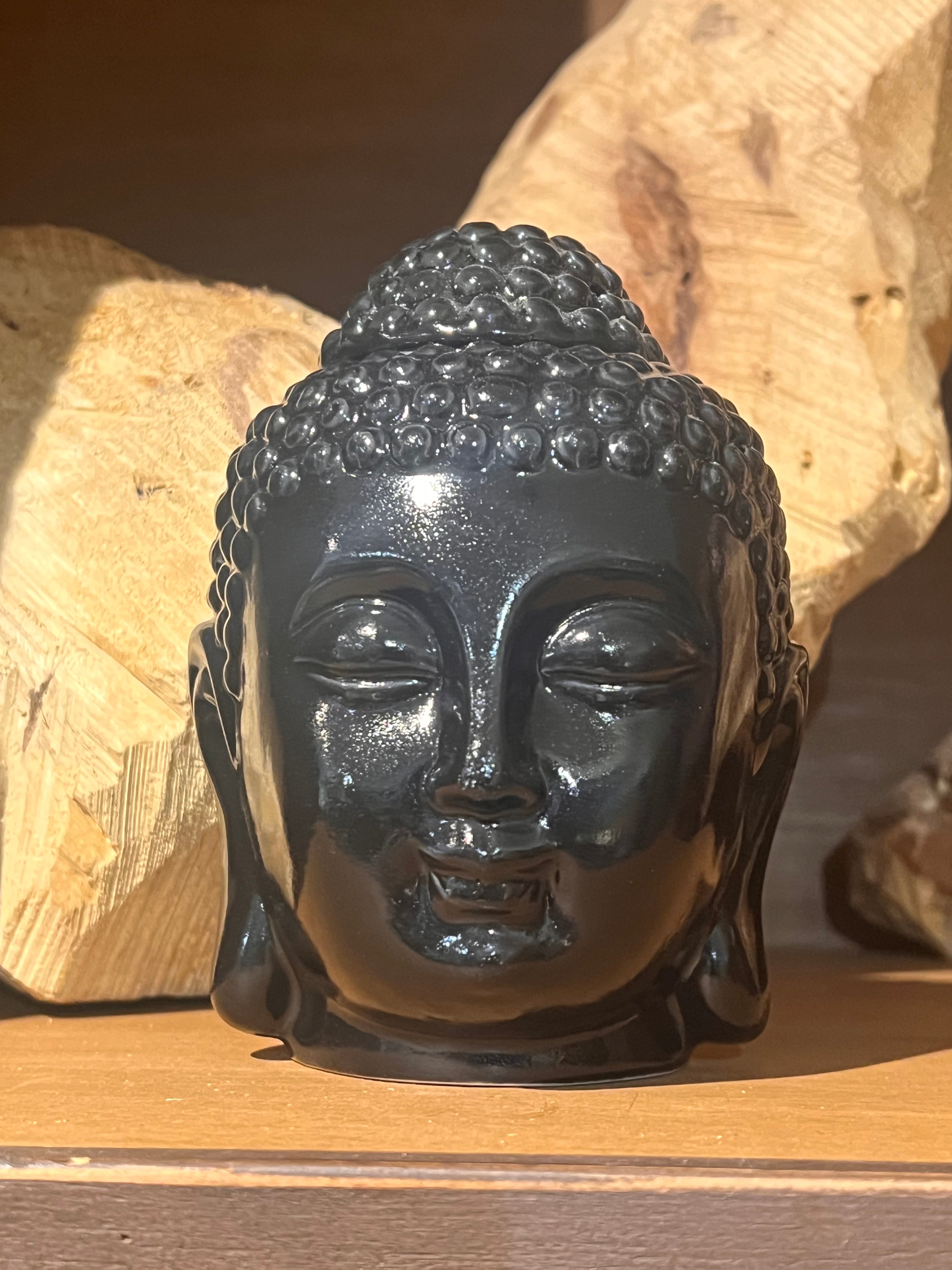 墨黑色的佛頭造型,