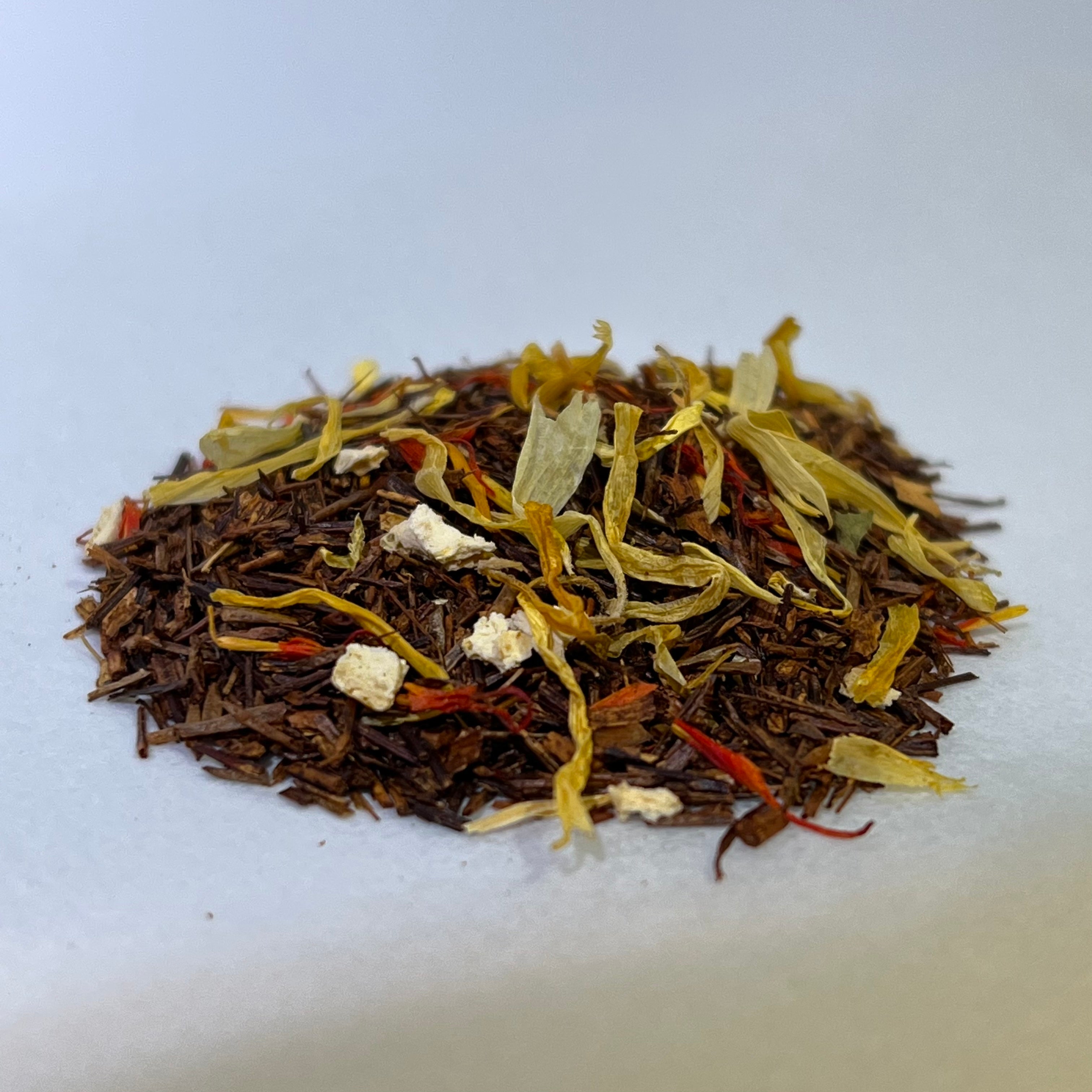 完成發酵的南非國寶茶會呈現紅色,混合彿手柑,紅花和萬壽菊。
