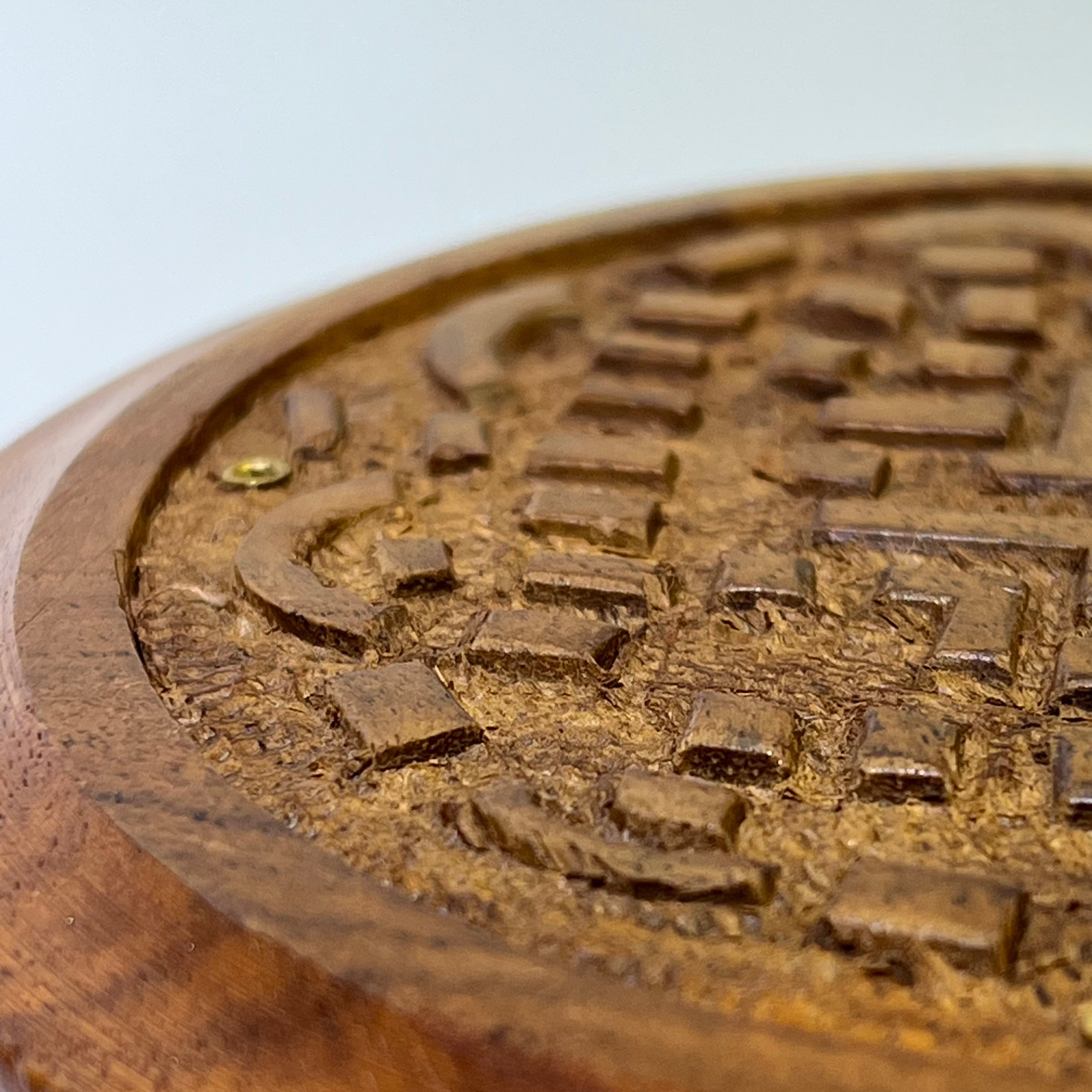 迷宮圖騰圓木香碟,工匠人手雕刻製成-線香用