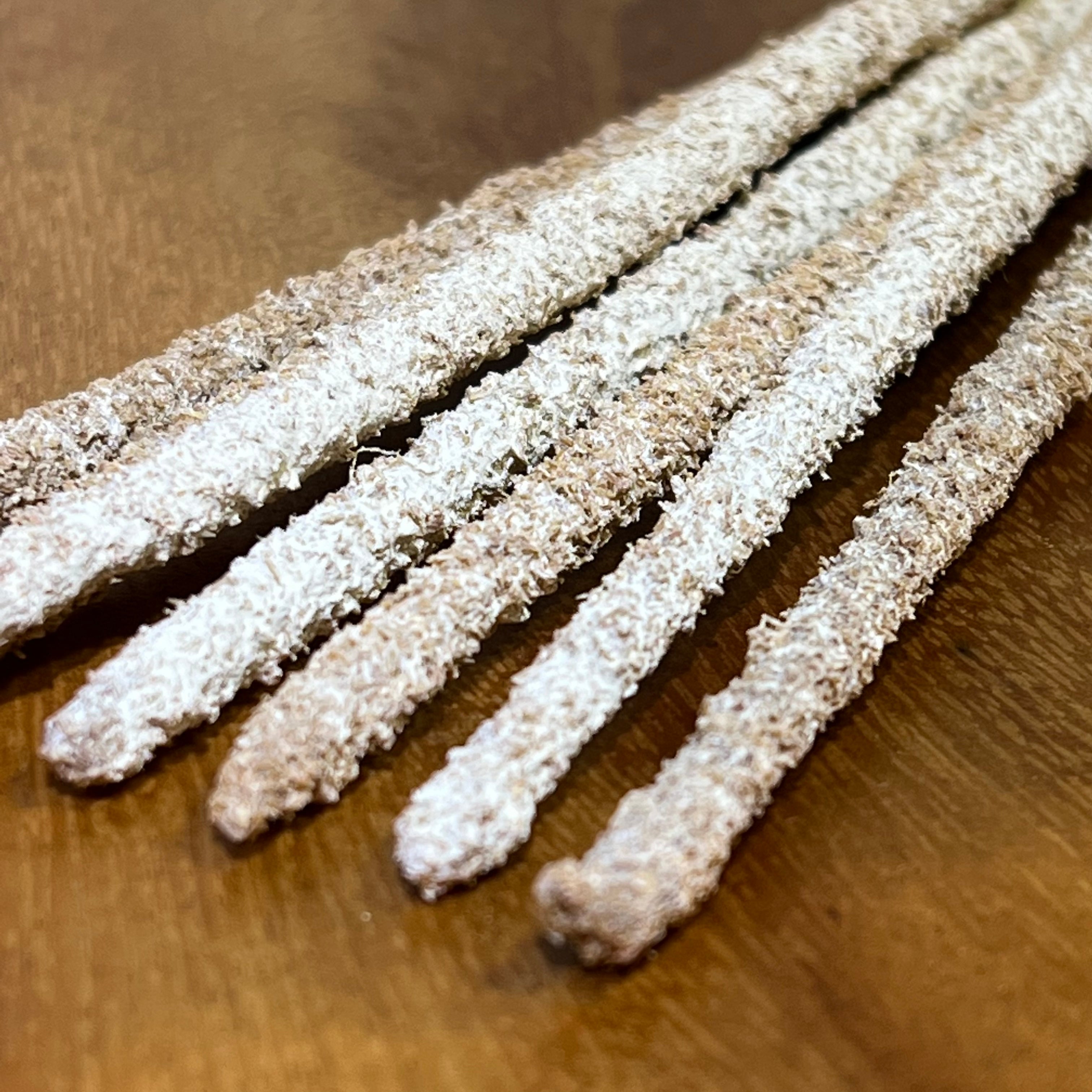 沒藥脂製成的手工香,外型與一般線香有別,工匠